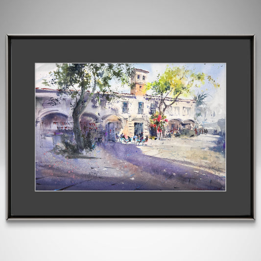 Valencia Sunlit Square – Watercolor Painting – Spain-Inspired Art – Morning Stillness in Valencia #2 8x12 in