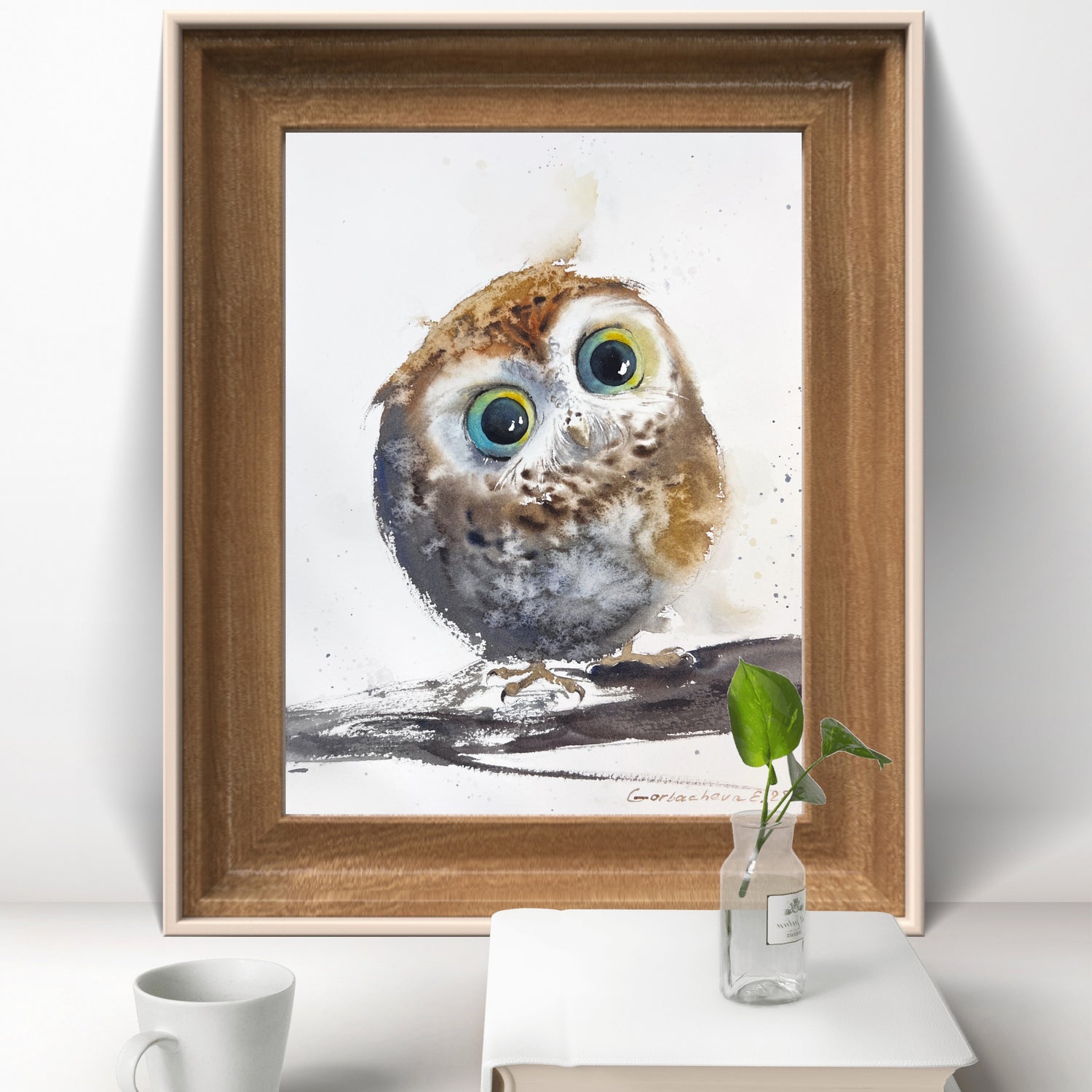 Original Watercolor Painting Tiny Owl, Cute Baby Owl Art, Charming owlet 7x7 in