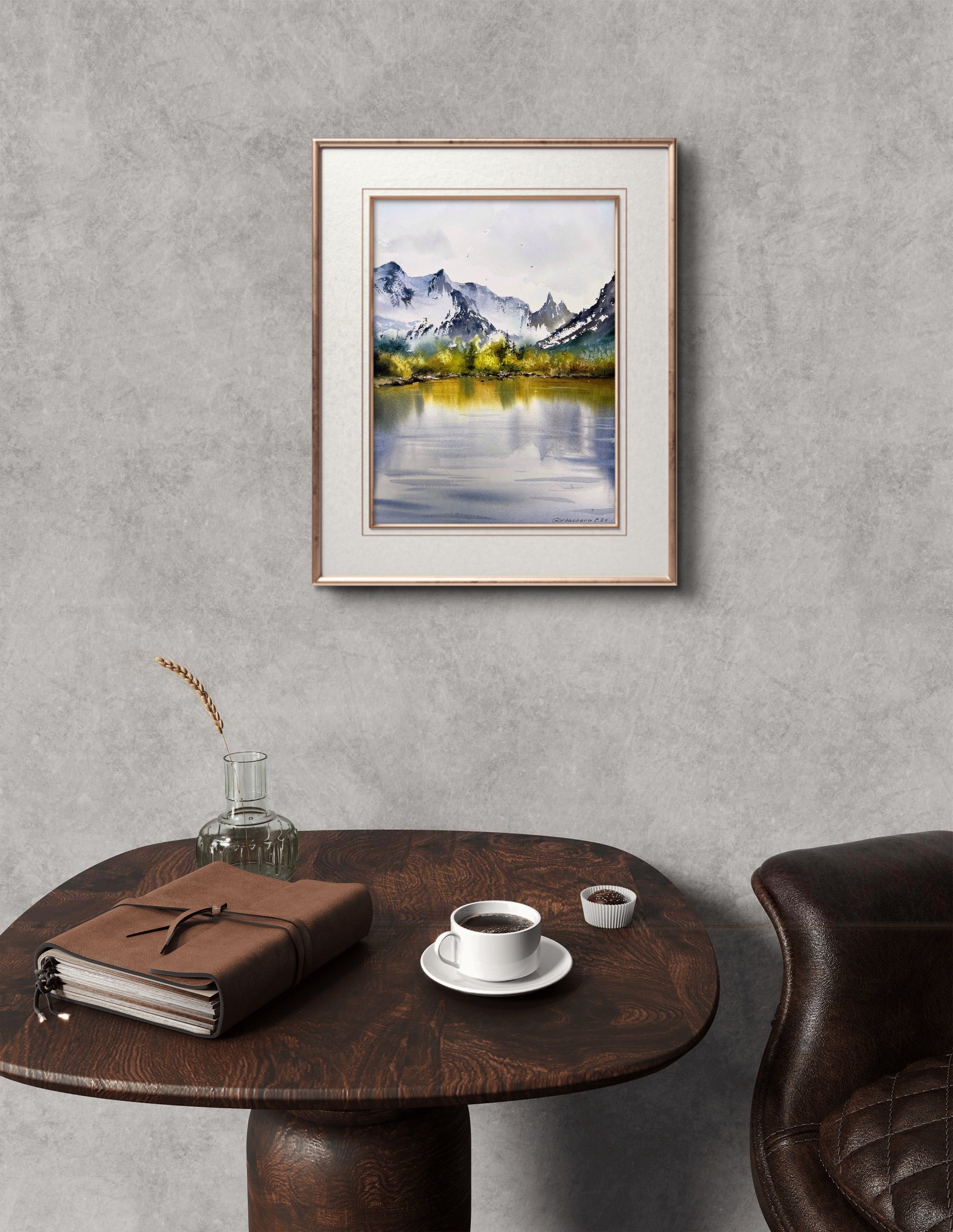 Abstract Painting Watercolor Original, Contemporary Art - Mountain Lake #36