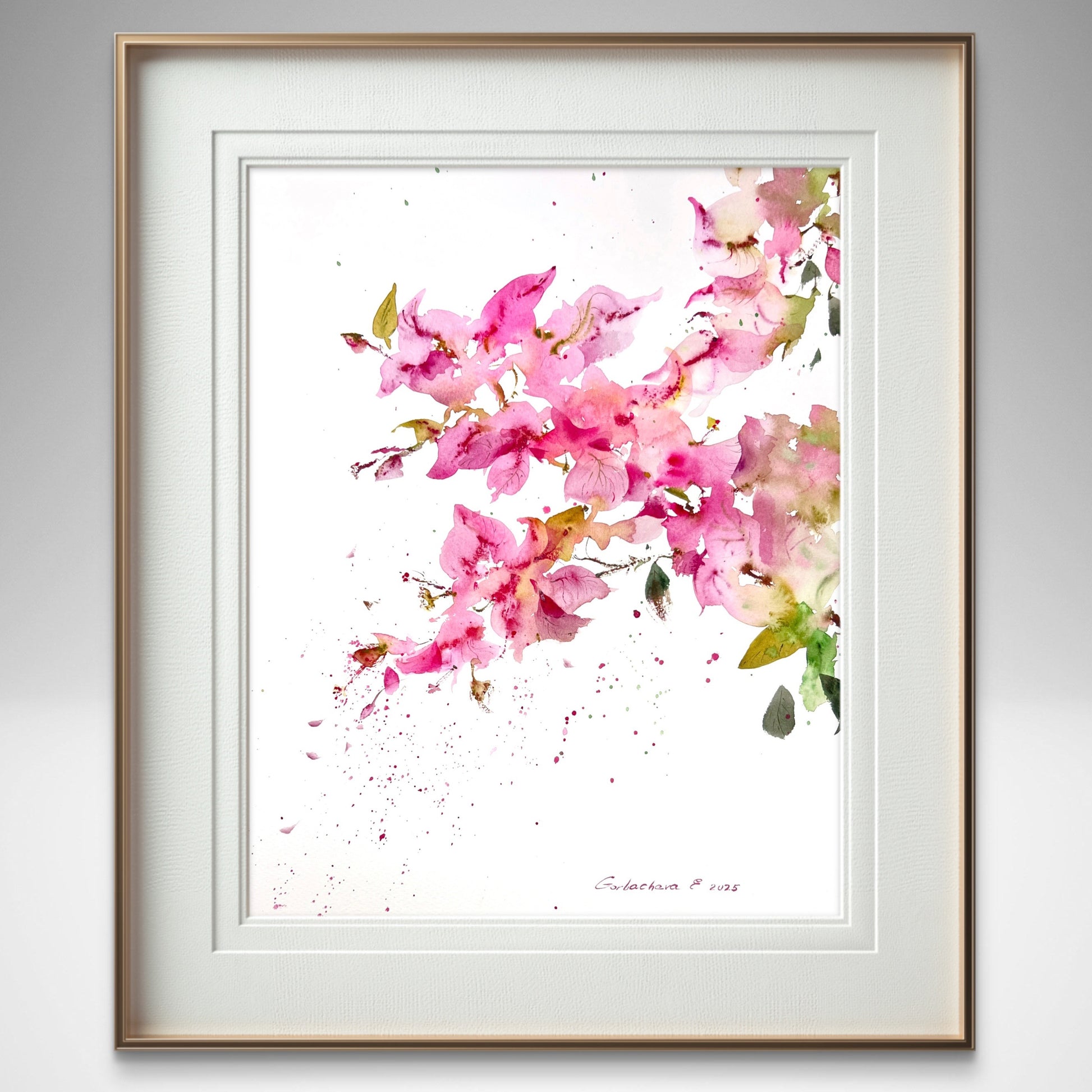 Discover the vibrant allure of "Bougainvillea Dream #2," an original watercolor painting featuring blooming bougainvillea flowers. This unique 12x14 inch floral artwork brings tropical elegance and freshness to any space, perfect for flower art enthusiasts!