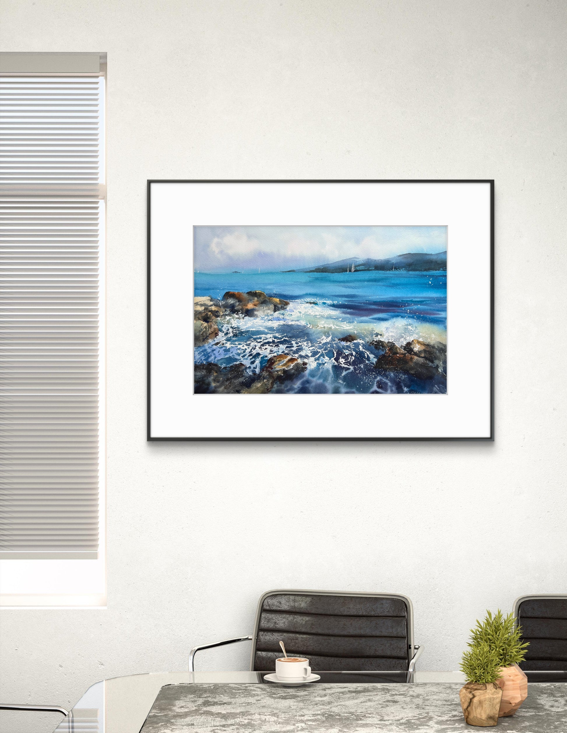 Add a touch of tranquility to your space with this original watercolor painting titled Sea and Stones #2. Featuring serene sea waves gently crashing against the rugged stones, this piece captures the beauty and power of the ocean. Hand-painted with exquisite detail, this artwork is perfect for anyone looking to bring the calming essence of the seaside into their home. Display it in your living room, bedroom, or office for a peaceful and inspiring atmosphere. Upgrade your decor with this captivating watercolor painting today.