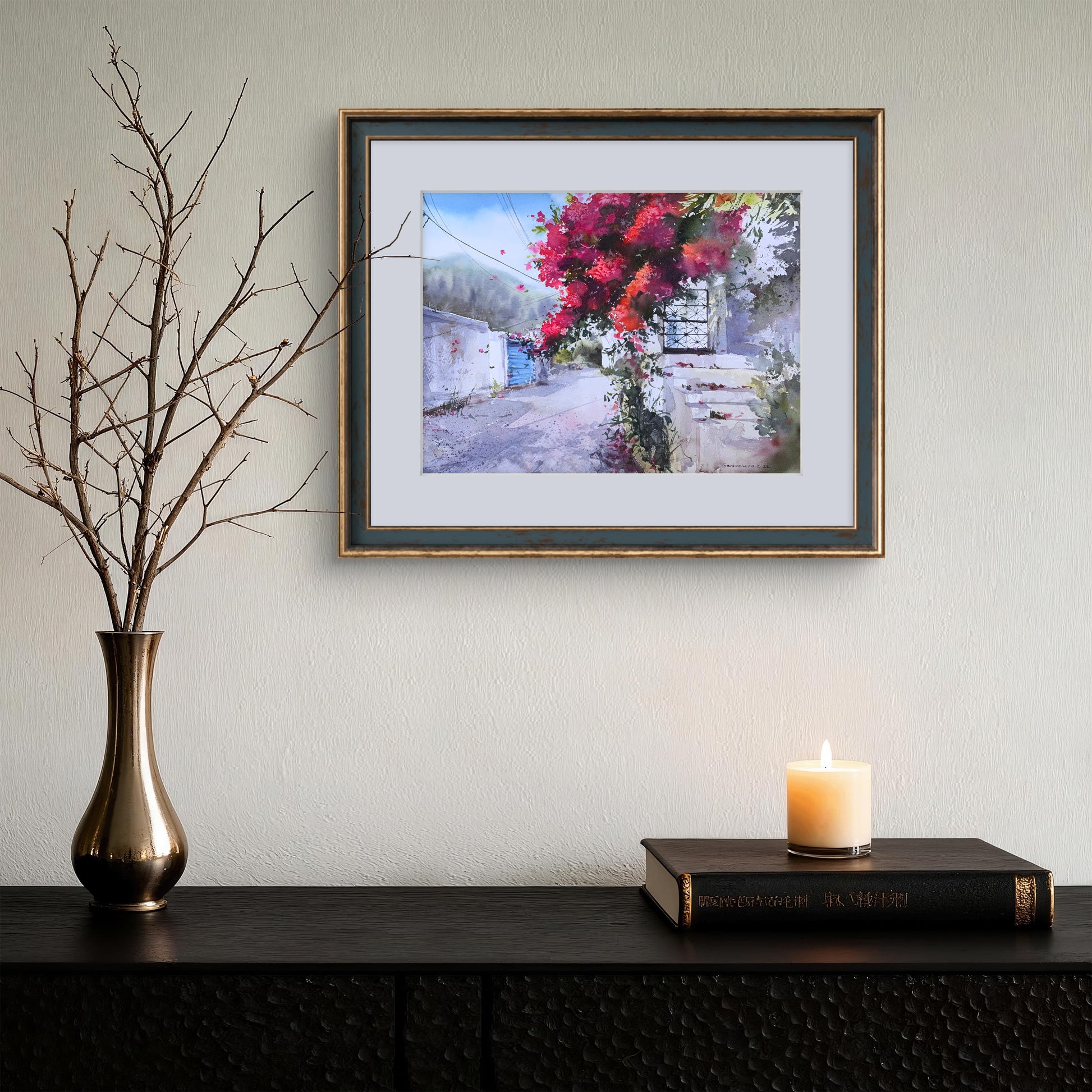 Bring the beauty of this Mediterranean village into your home or office with this exquisite original Bougainvillea Art Watercolour Painting. Add this charming piece of art to your home today!