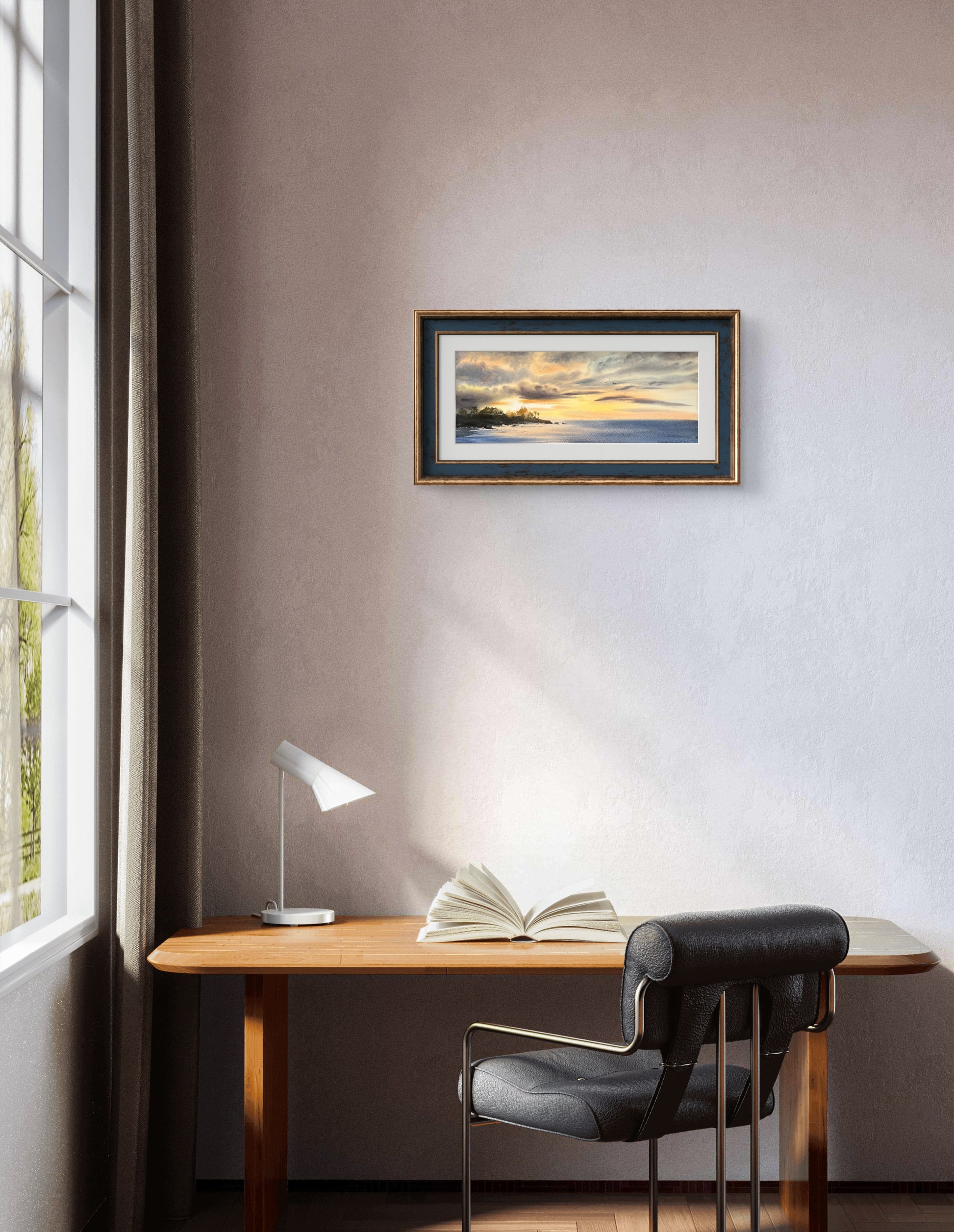The colors used really bring this painting to life and will light up any room with their radiance and luminosity. The attention to detail makes it look almost like a photograph. Measuring 16 inches by 6 inches, this painting would be a lovely addition to your living room, bedroom, or office wall.