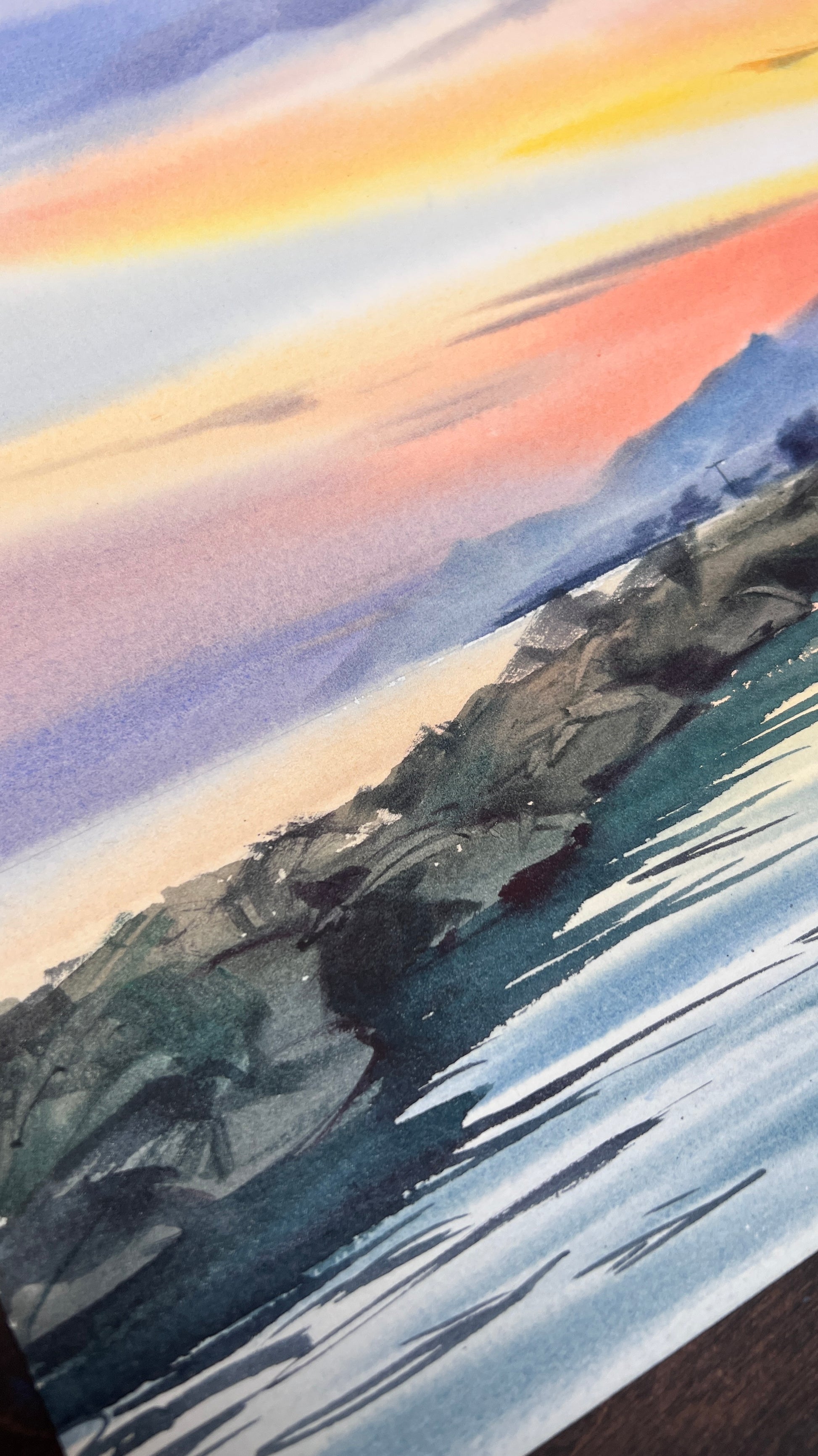 Seascape Watercolor Painting, Golden Hour in Cyprus #2 12x16