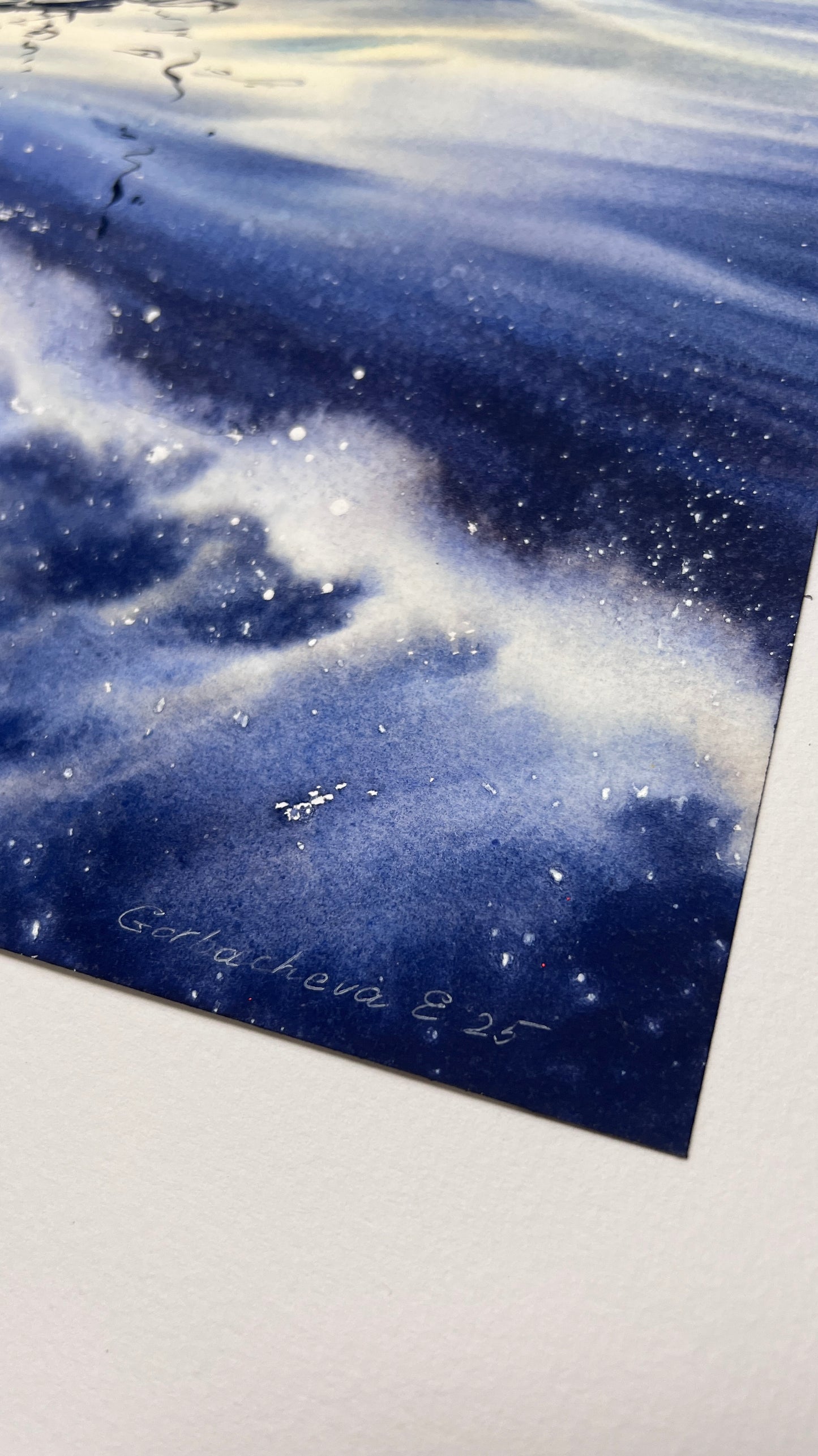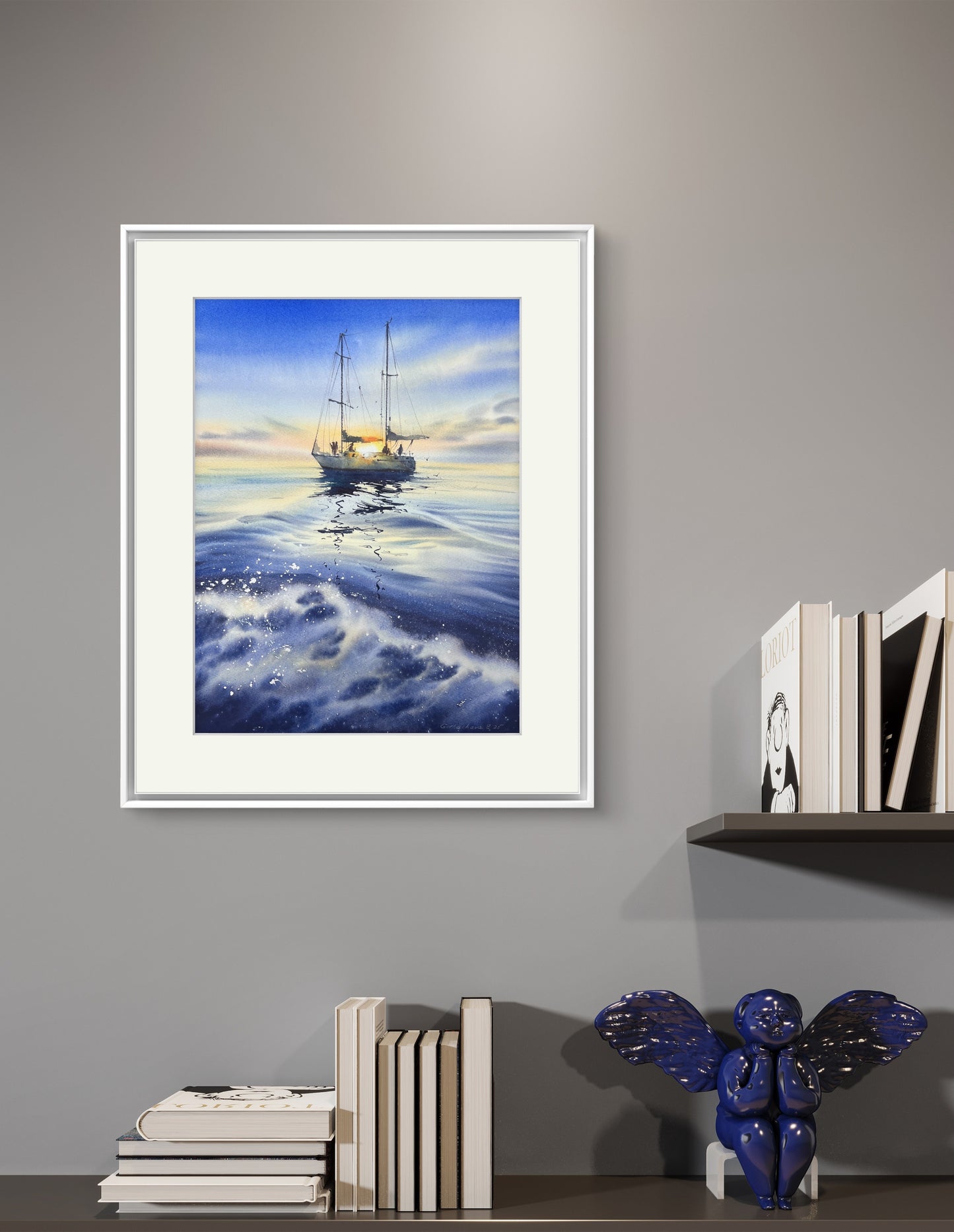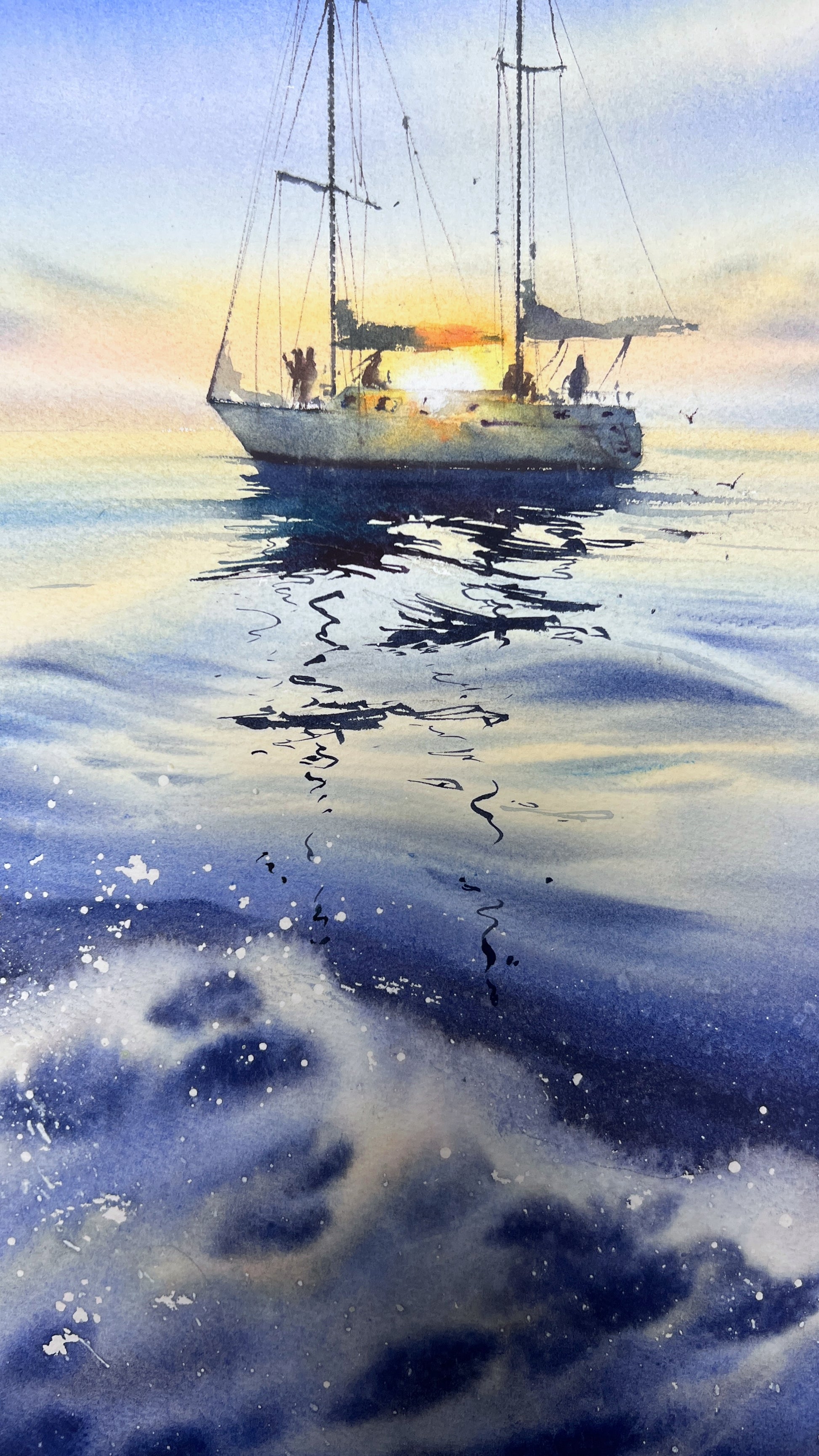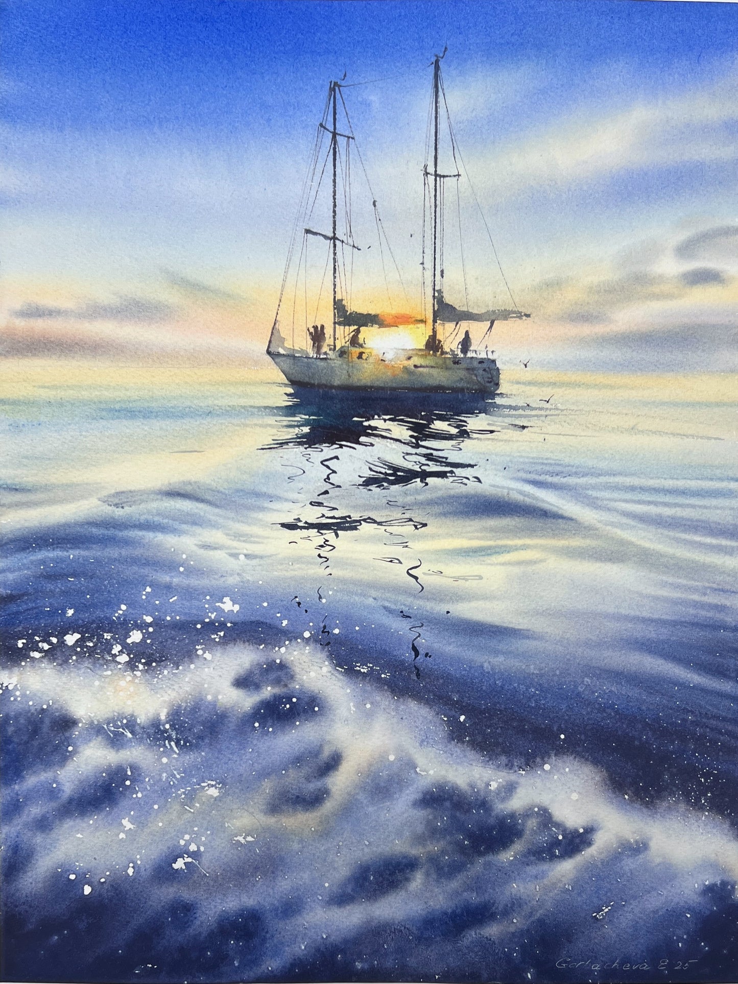 Each stroke of this watercolor painting is created with meticulous care using professional-grade pigments, ensuring vibrant colors that will last over time. The blend of blues and yellows evokes a peaceful maritime atmosphere, ideal for fans of coastal and marine-inspired art. This unique piece also makes a distinctive gift for him — whether for birthdays, Father’s Day, or simply to add a touch of calm elegance to his space.